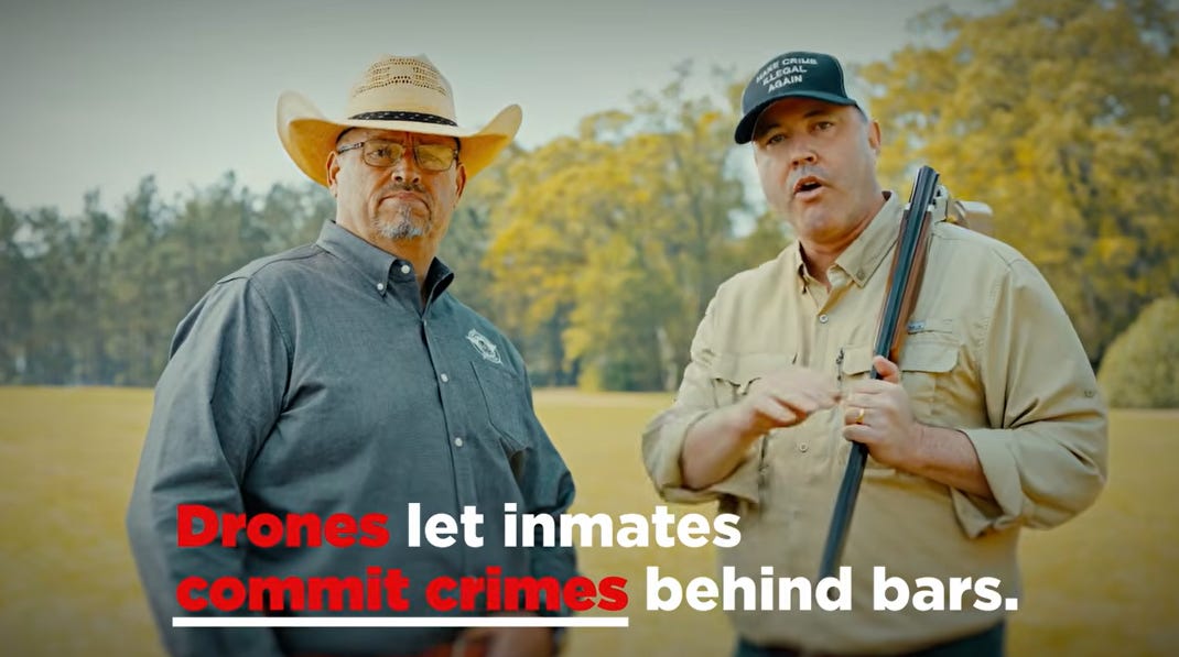 'Those drones let inmates commit crimes behind bars. But Washington won’t let us shoot them down. We’re not waiting on bureaucrats anymore," says Carr, a Republican running for Governor