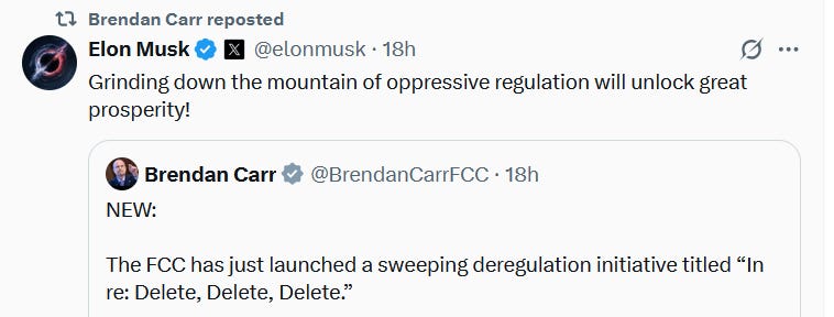 Project Delete: FCC Chairman Brendan Carr yesterday unveiled his Delete, Delete, Delete agenda – a catchy way of saying he wants the agency to eradicate as many rules as possible as quickly as possible to create prosperity through deregulation. “The FCC is committed to ending all of the rules and regulations that are no longer necessary. And we welcome the public’s participation and feedback throughout this process,” Carr said in a statement. Comments are due April 11 and replies on April 28 in GN Docket No. 25-133. Carr has been telegraphing this move for weeks as part of a broader plan to roll back decisions by the Biden administration to add regulations – such as digital discrimination rules with a disparate impact standard – or to leave in place legacy rules, especially broadcast regulations, that have been on the books for decades. “We applaud Chairman Carr for taking a deep dive into the many rules and regulations that no longer serve any meaningful public interest purpose and only hamper broadcasters’ ability to compete. Chief among them are the outdated ownership rules – both the national TV ownership cap and the local radio and TV ownership rules – that must be reformed as soon as possible,” said National Association of Broadcasters spokesman Alex Siciliano. In the FCC’s public notice, the agency provided structure and guidance in the submission of deregulatory recommendations. The agency also asked whether it needed to review the continued validity of rules sustained under Chevron deference, even though the Supreme Court indicated in the landmark Loper Bright case such rules were shielded by stare decisis. “Are there rules that were based on a past FCC interpretation of statutory language that should be revisited in light of Loper Bright?” the notice said. (Continued after paywall.)
