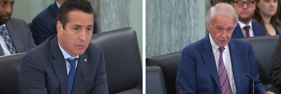 Free Speech: Memories can be short on Capitol Hill, as an exchange Wednesday between Sen. Edward Markey (D-Mass.) and Sen. Bernie Moreno (R-Ohio) demonstrated. At a Senate Commerce Committee hearing on government encroachment on the First Amendment, Markey read a long statement condemning alleged Trump administration censorship. “Our democracy is at risk when the First Amendment is being challenged so fundamentally by the President out of the White House instructing his chairman of the [FCC] to revoke the licenses of anyone who dares run any program that runs contrary to his views,” Markey said. Then it was Moreno’s turn. “Just a quick question to my colleague …. Did you sign on to that letter asking the FCC to revoke the license of Sinclair broadcasting in 2018?” Markey, 79, wasn’t sure. “I’ll have to go and to review that,” Markey replied. (More after paywall.)